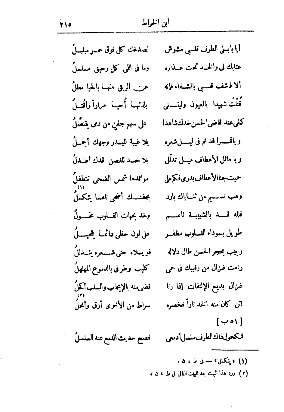 أيا بابلي الطرف قلبي مشوش ... لصدغك كل فوق حمر مبلبل