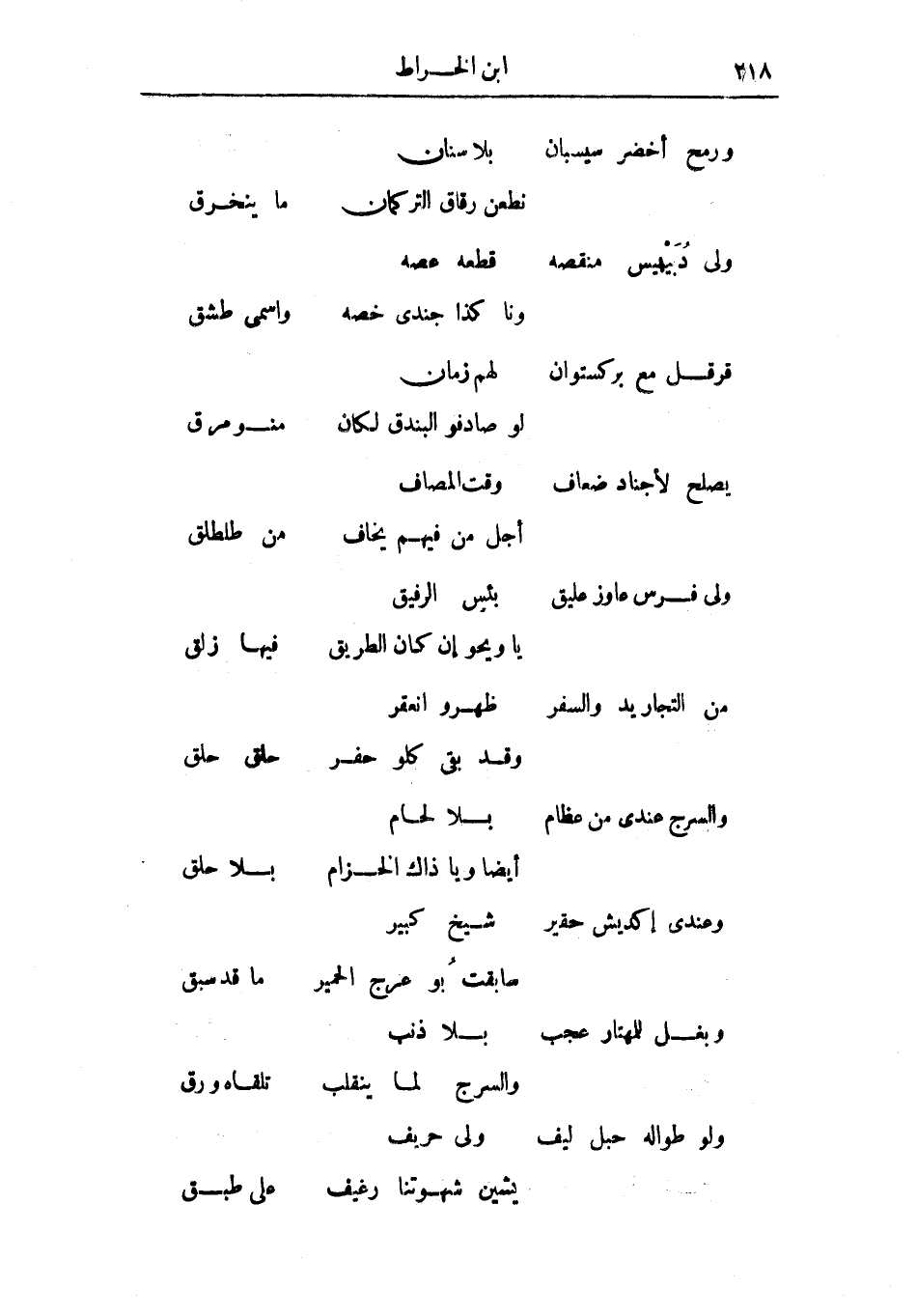 والسرج عندي من عظامبلا لحامأيضاً ويا ذاك الحزامبلا حلق