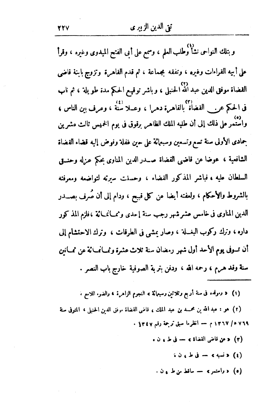 وبتلك النواحي نشأ وطلب العلم، وسمع على أبي الفتح الميدوي وغيره، وقرأ على أبيه القراءات وغيره، وتفقه بجماعة، ثم قدم القاهرة، وتزوج بابنة قاضي القضاة موفق الدين عبد الله الحنبلي، وباشر توقيع الحكم مدة طويلة، ثم ناب في الحكم عن القضاة بالقاهرة دهراً، وعلا سنة، وعرف بين الناس، واستمر على ذلك إلى أن طلبه الملك الظاهر برقوق في يوم الخميس ثالث عشرين جمادى الأولى سنة تسع وتسعين وسبعمائة على حين غفلة وفوض إليه قضاء القضاة الشافعية، عوضاً عن قاضي القضاة صدر الدين المناوي بحكم عزله وحنق السطلان عليه، فباشر المذكور القضاء، وحسنت سيرته لتواضعه ومعرفته بالشروط والأحكام، ولعفته أيضاً عن كل قبيح، ودام إلى أن صرف بصدر الدين المناوي في خامس عشر شهر رجب سنة إحدى وثمانمائة، فلزم المذكور داره، وترك ركوب البغلة، وصار يمشي في الطرقات، وترك الاحتشام إلى أن توفي يوم الأحد أول شهر رمضان سنة ثلاث عشرة وثمانمائة عن ثمانين سنة وقد هرم، رحمه الله، ودفن بتربة الصوفية خارج باب النصر.