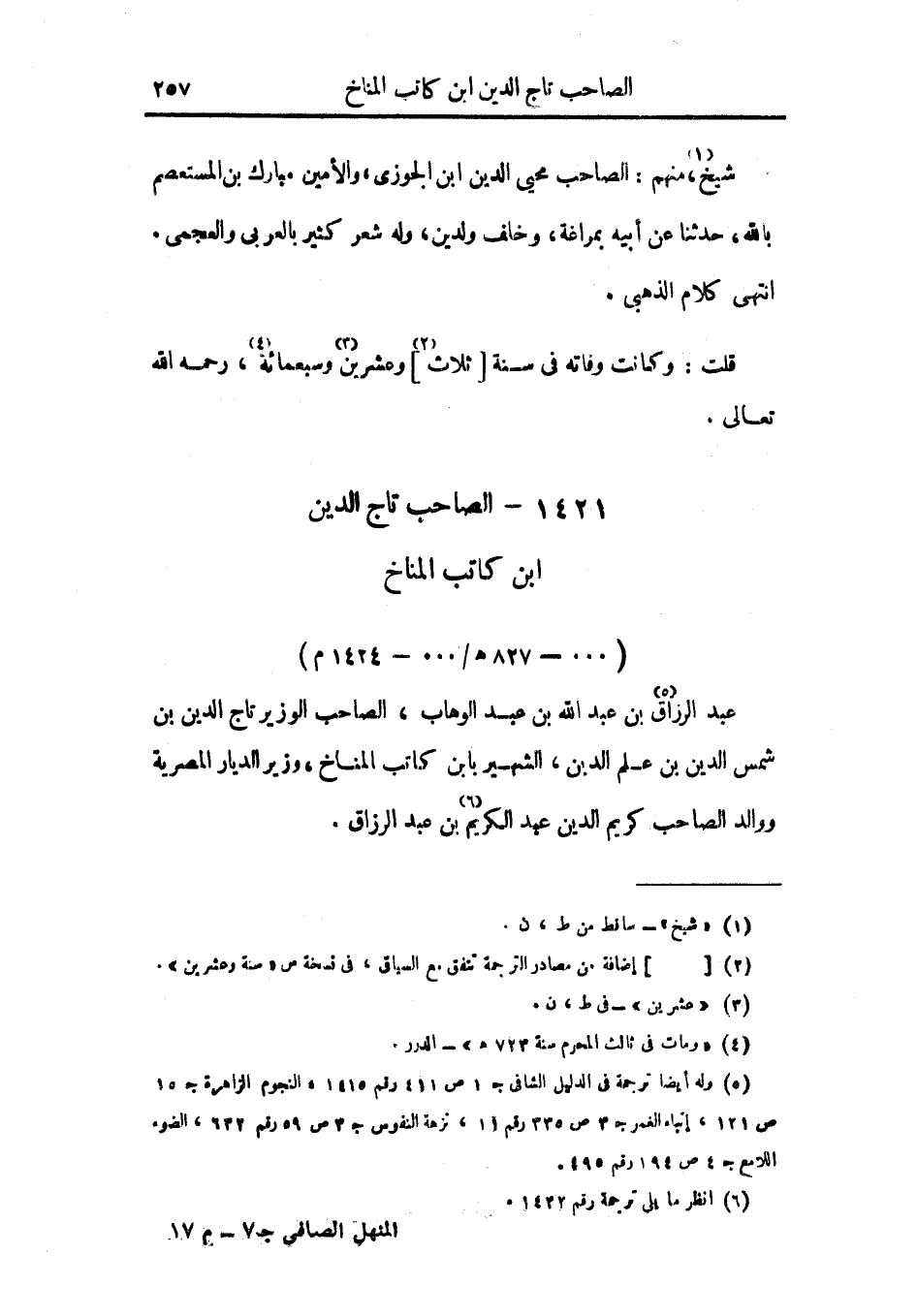 عبد الرزاق بن عبد الله بن عبد الوهاب، الصاحب الوزير تاج الدين بن شمس الدين بن علم الدين، الشهير بابن كاتب المناخ، وزير الديار المصرية ووالد الصاحب كريم الدين عبد الكريم بن عبد الرزاق.