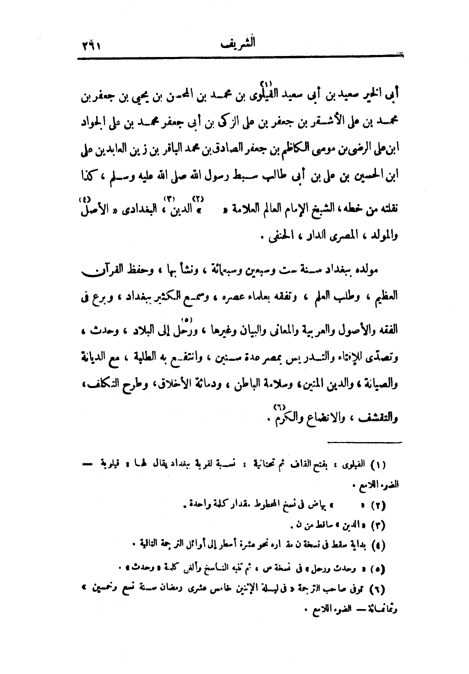 أبي الخير سعيد بن أبي سعيد القيلوي بن محمد بن المحسن بن يحيى بن جعفر بن محمد بن علي الأشقر بن جعفر بن علي الزكي بن أبي جعفر محمد بن علي الجواد ابن علي الرضى بن موسى الكاظم بن جعفر الصادق بن محمد الباقر بن زين العابدين علي ابن الحسين بن علي بن أبي طالب سبط رسول الله صلى الله عليه وسلم، كذا نقلته من خطه، الشيخ الإمام العالم العلامة ... الدين، البغدادي الأصل والمولد، المصري الدار، الحنفي.