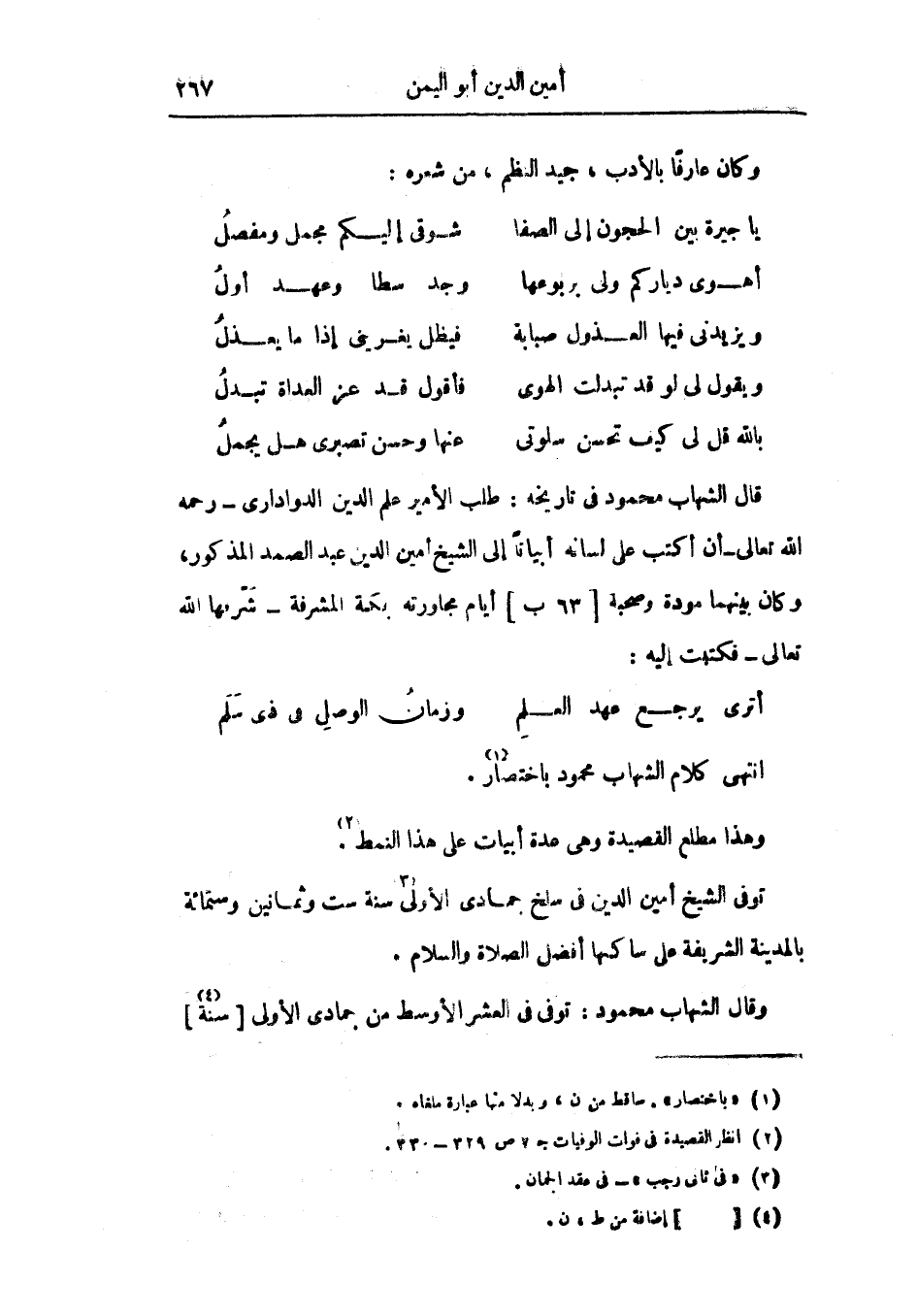قال الشهاب محمود في تاريخه: طلب الأمير علم الدين الدواداري رحمه الله تعالى أن أكتب على لسانه أبياتاً إلى الشيخ أمين الدين عبد الصمد المذكور، وكان بينهما مودة وصحبة أيام مجاورته بمكة المشرفة شرفها الله تعالى فكتبت إليه:؟ أترى يرجع عهد العلم وزمان الوصل في ذي سلم انتهى كلام الشهاب محمود باختصار.