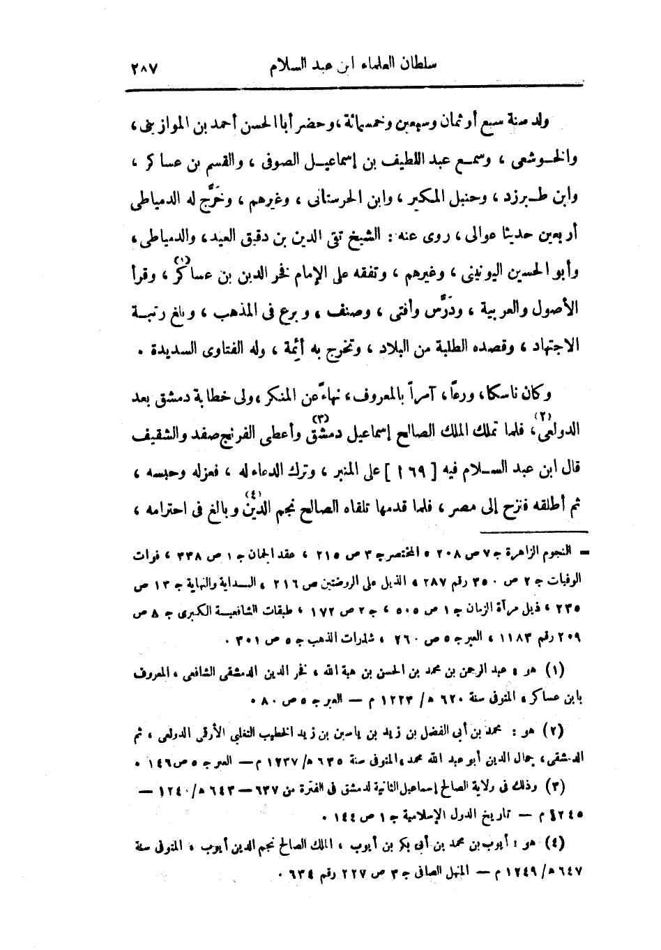 وكان ناسكاً، ورعاً، آمراً بالمعروف، نهاء عن المنكر، ولي خطابة دمشق بعد الدولعي، فلما تملك الصالح إسماعيل دمشق وأعطى الفرنج صفد والشقيف قال ابن عبد السلام فيه على المنبر، وترك الدعاء له، فعزله وحبسه، ثم أطلقه فنزح إلى مصر، فلما قدمها تلقاه الصالح نجم الدين وبالغ في احترامه.