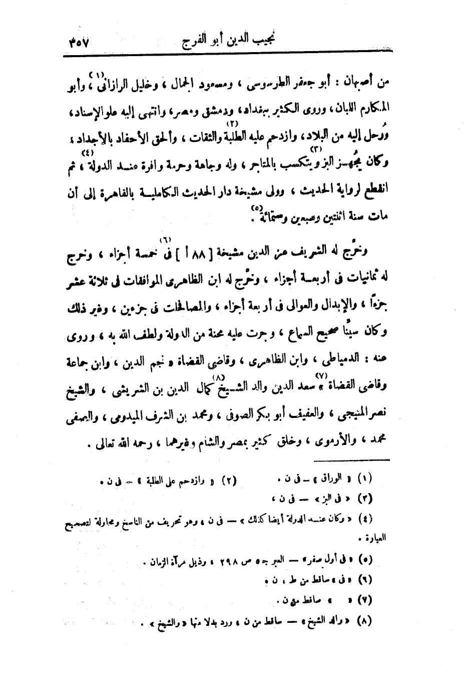 من أصبهان: أبو جعفر الطرسوسي، ومسعودالجمال، وخليل الرازاني، وأبو المكارم اللبان، وروى الكثير ببغداد، ودمشق ومصر، وانتهى إليه علو الإسناد، ورحل إليه من البلاد، وازدحم عليه الطلبة والثقات، وألحق الأحفاد بالأجداد، وكان يجهز البز ويتكسب بالمتاجر، وله وجاهة وحرمة وافرة عند الدولة، ثم انقطع لرواية الحديث، وولي مشيخة دار الحديث الكاملية بالقاهرة إلى أن مات سنة اثنتين وسبعين وستمائة.