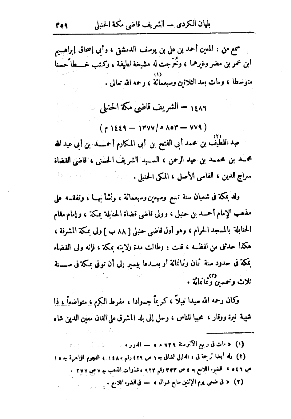 عبد اللطيف بن محمد أبي الفتح بن أبي المكارم احمد بن أبي عبد الله محمد بن محمد بن عبد الرحمن، السيد الشريف الحسني، قاضي القضاة سراج الدين، الفاسي الأصل، المكي الحنبلي.