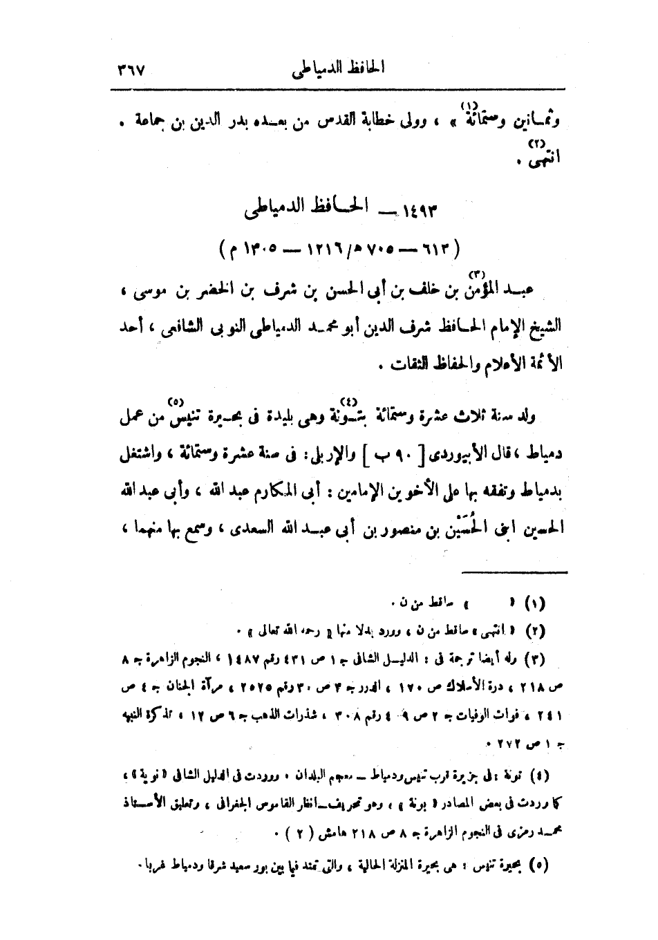 عبد المؤمن بن خلف بن أبي الحسن بن شرف بن الخضر بن موسى، الشيخ الإمام الحافظ شرف الدين أبو محمد الدمياطي النوبي الشافعي، أحد الأئمة الأعلام والحفاظ الثقات.