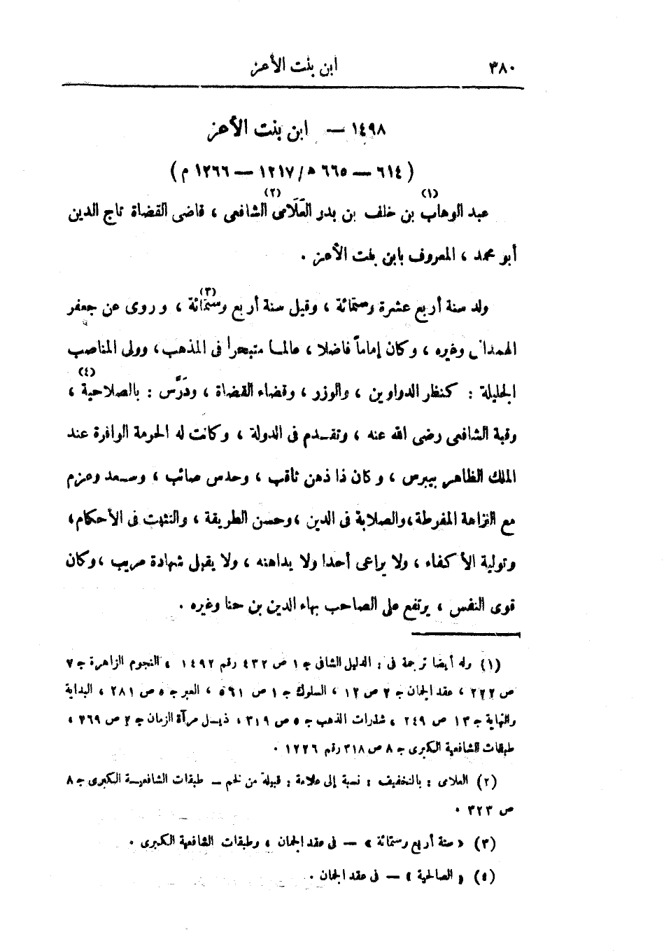 بعد الوهاب بن خلف بن دبر العلامي الشافعي، قاضي القضاة تاج الدين أبو محمد، المعروف بابن بنت الأعز.