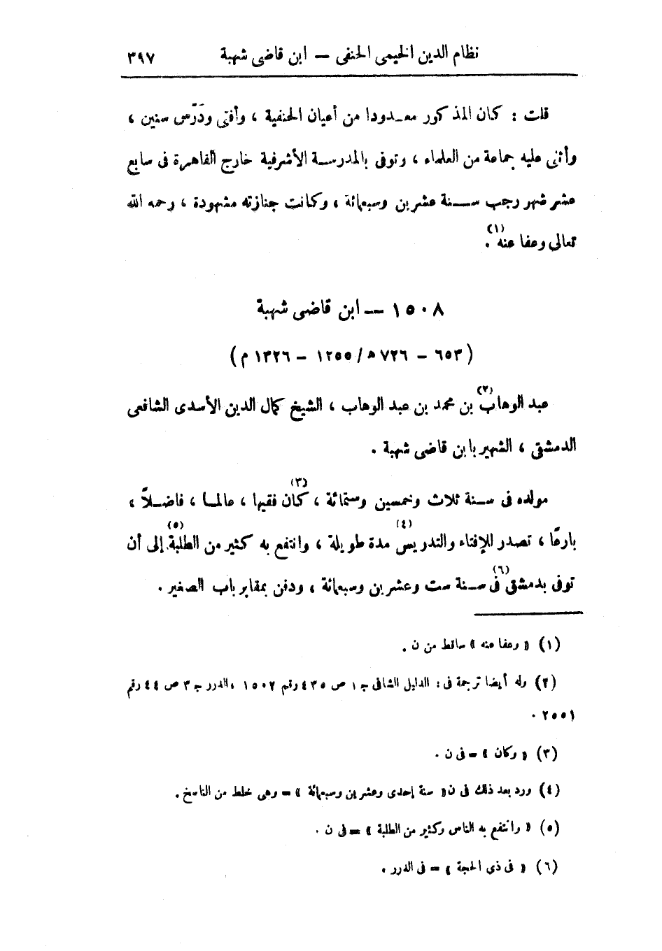 عبد الوهاب بن محمد بن عبد الوهاب بن الشيخ كمال الدين الأسدي الشافعي الدمشقي، الشهير بابن قاضي شهبة.