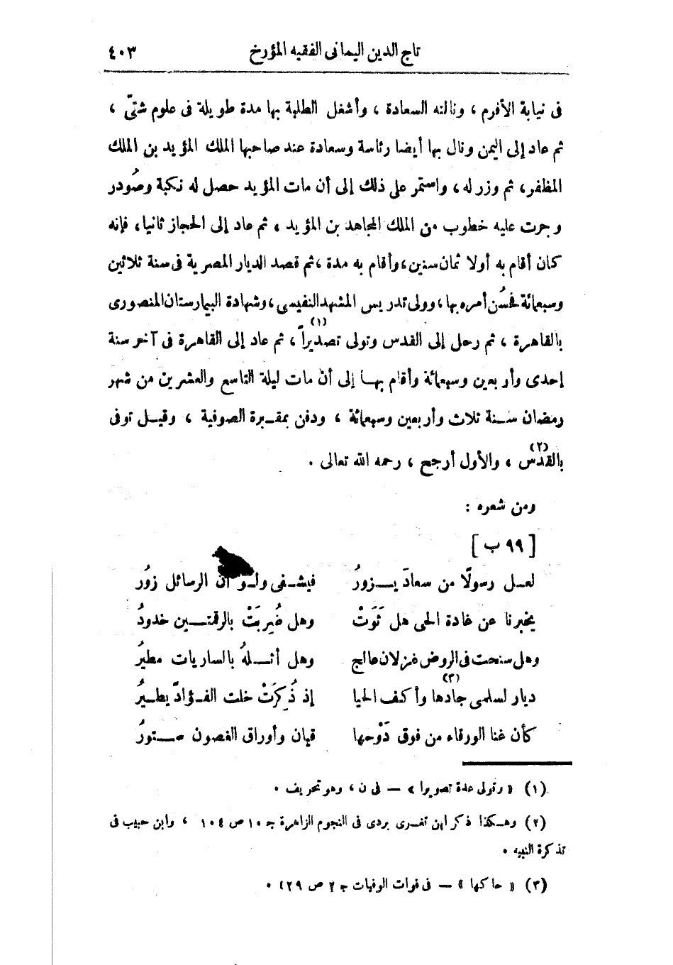 في نيابة الأفرم، ونالته السعادة، وأشغل الطلبة بها مدة طويلة في علوم شتى، ثم عاد إلى اليمن ونال بها أيضاً رئاسة وسعادة عند صاحبها الملك المؤيد بن الملك المظفر، ثم وزر له، واستمر على ذلك إلى أن مات المؤيد حصل له نكبة وصودر وجرت عليه خطوب من الملك المجاهد بن المؤيد، ثم عاد إلى الحجاز ثانياً، فإنه كان أقام به أولاً ثمان سنين، وأقام به مدة، ثم قصد الديار المصرية في سنة ثلاثين وسبعمائة فحسن أمره بها، وولي تدريس المشهد النفيس، وشهادة البيمارستان المنصوري بالقاهرة، ثم رحل إلى القدس وتولى تصديراً، ثم عاد إلى القاهرة في آخر سنة إحدى وأربعين وسبعمائة، ودفن بمقبرة الصوفية، وقيل توفي بالقدس، والأول أرجح، رحمه الله تعالى.