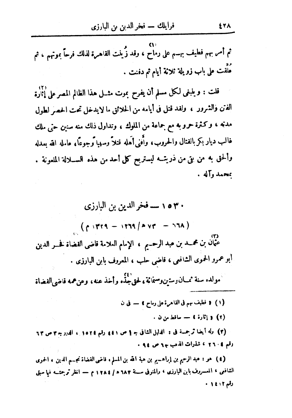 عثمان بن محمد بن عبد الرحيم، الإمام العلامة قاضي القضاة فخر الدين أبو عمرو الحموي الشافعي قاضي حلب، المعروف بابن البارزي.