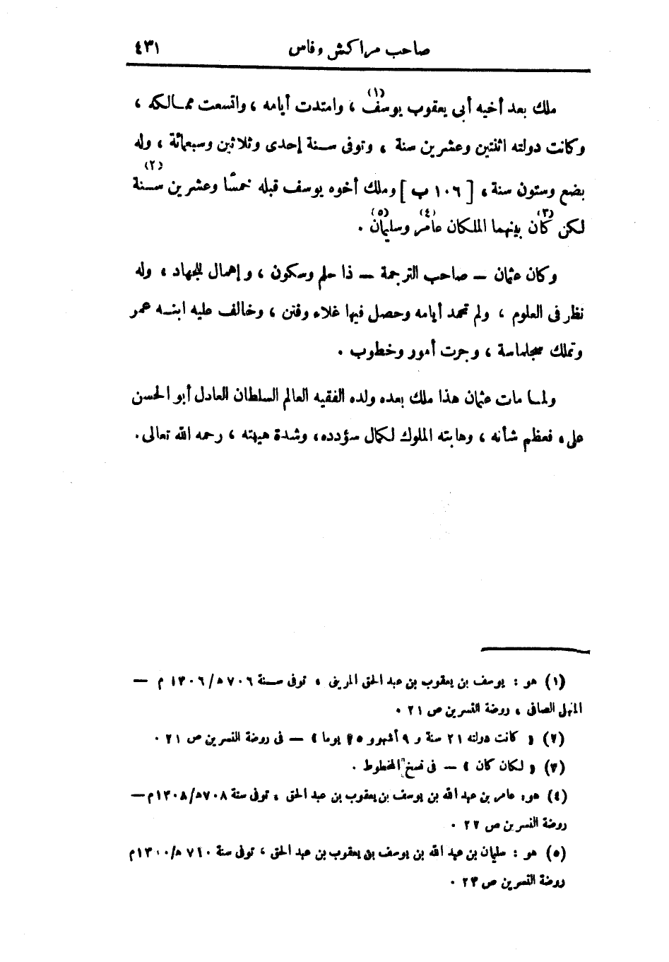 ملك بعد أخيه أبي يعقوب يوسف، وامتدت أيامه، واتسعت ممالكه، وكانت دولته اثنتين وعشرين سنة، وتوفي سنة إحدى وثلاثين وسبعمائة، وله بضع وستون سنة، وملك أخوه يوسف قبله خمساً وعشرين سنة لكن كان بينهما الملكان عامر وسليمان.