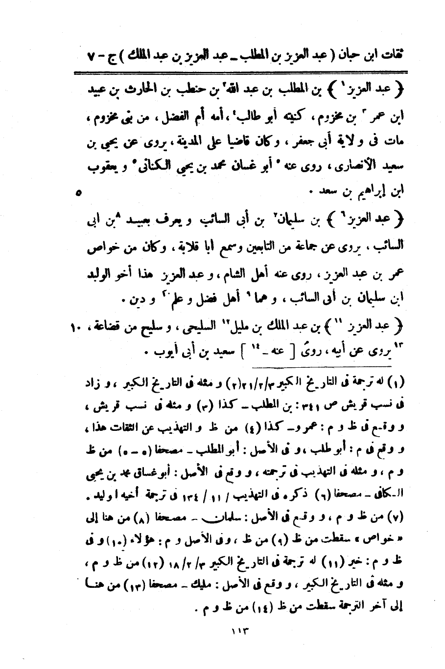 9240 - عبد الْعَزِيز بْن الْمطلب بْن عبد الله بن حنْطَب بن الْحَارِث بْن عبيد بْن عمر بْن مَخْزُوم كنيته أَبُو طَالب أمه أم الْفضل من بني مَخْزُوم مَاتَ فِي ولَايَة أبي جَعْفَر وَكَانَ قَاضِيا على الْمَدِينَة يروي عَن يحيى بن سعيد الْأنْصَارِيّ روى عَنْهُ أَبُو غَسَّان مُحَمَّد بْن يَحْيَى الْكِنَانِي وَيَعْقُوب بْن إِبْرَاهِيم بْن سعد