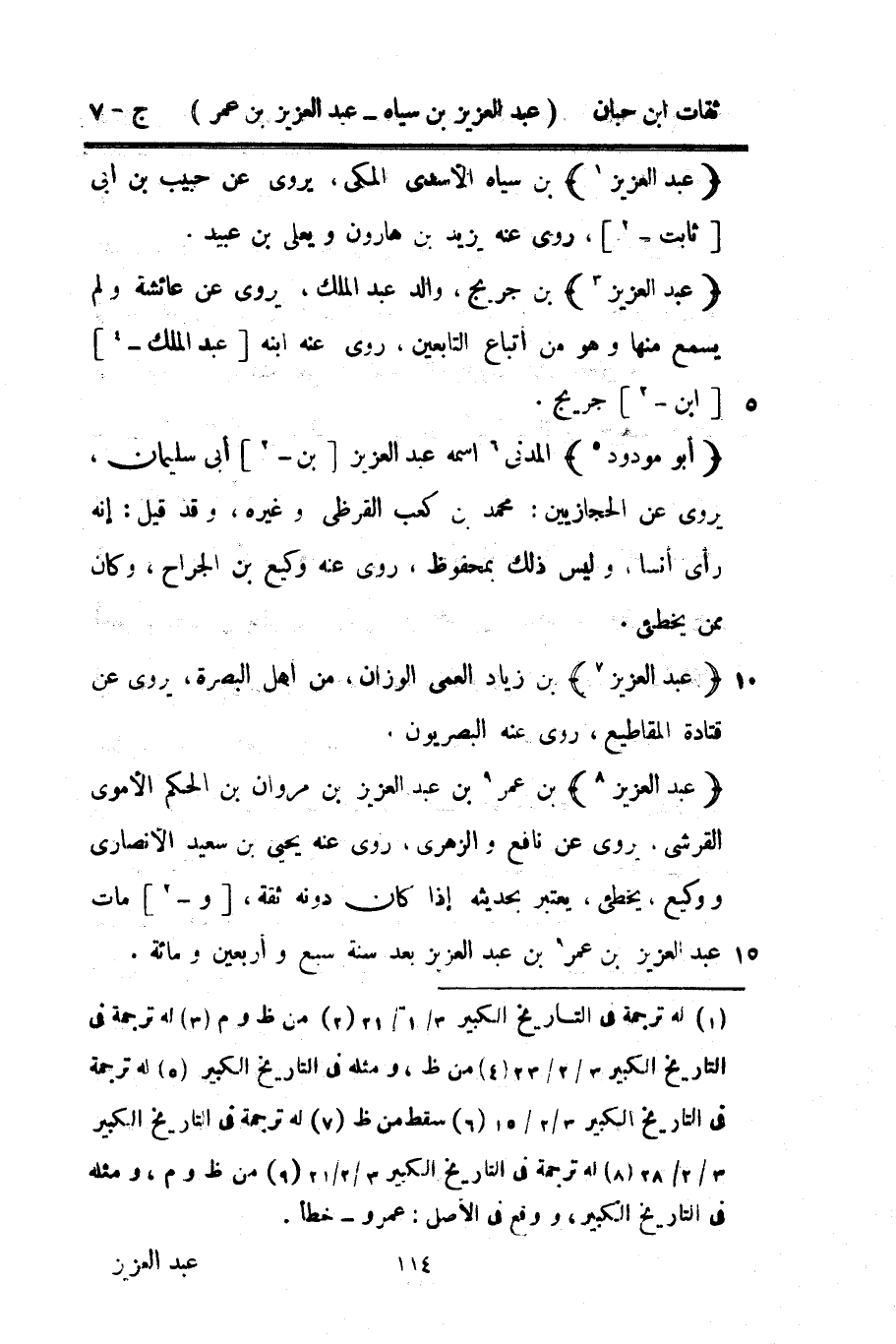 9247 - عبد الْعَزِيز بْن عمر بْن عَبْد الْعَزِيز بْن مَرْوَان بن الحكم الْأمَوِي الْقرشِي يروي عَنْ نَافِع وَالزهْرِيّ روى عَنهُ يحيى بن سعيد الْأنْصَارِيّ ووكيع يخطىء يعْتَبر بحَديثه إِذا كَانَ دونه ثِقَة وَمَات عبد الْعَزِيز بن عمر بن عبد الْعَزِيز بعد سنة سبع وَأَرْبَعين وَمِائَة