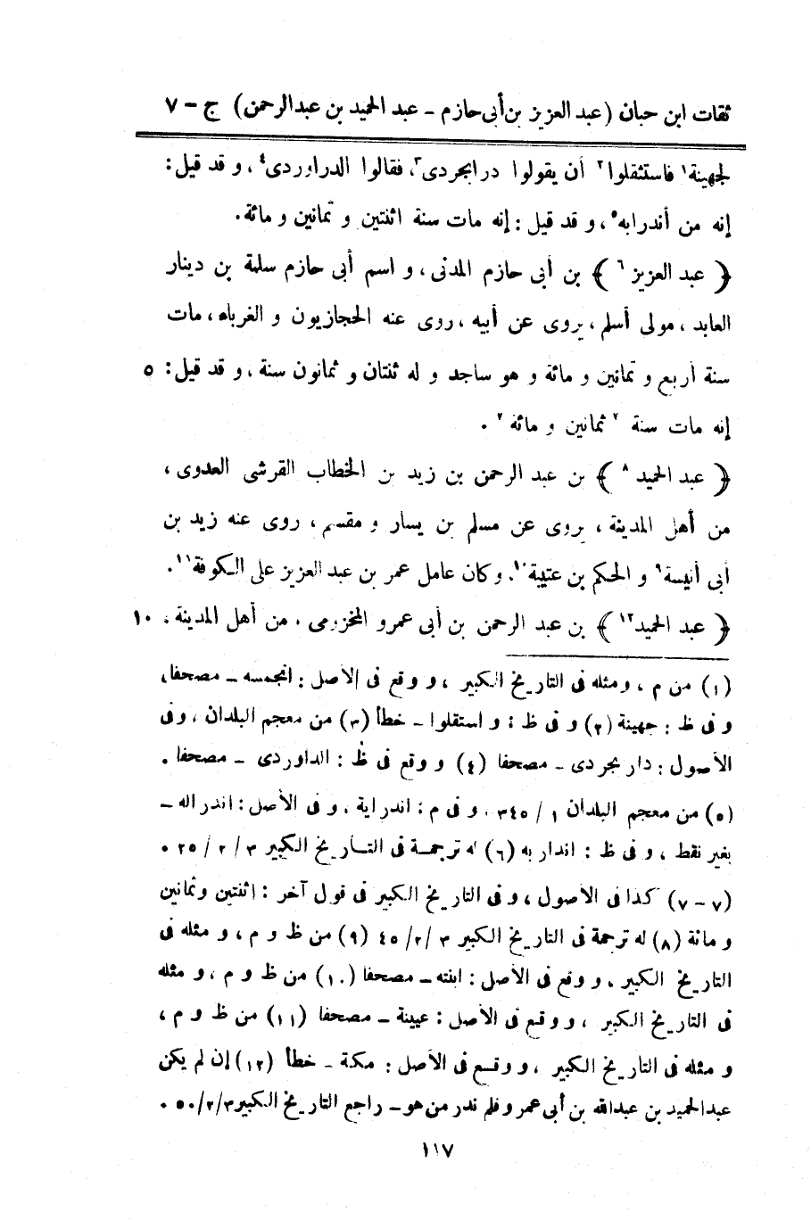 9256 - عبد الْعَزِيز بْن أبي حَازِم الْمدنِي وَاسم أبي حَازِم سَلمَة بْن دِينَار العابد مولى أسلم يروي عَنْ أَبِيه روى عَنْهُ الحجازيون والغرباء مَاتَ سنة أَربع وَثَمَانِينَ وَمِائَة وَهُوَ ساجد وَله ثِنْتَانِ وَثَمَانُونَ سنة وَقد قيل إِنَّه مَاتَ سنة ثَمَانِينَ وَمِائَة