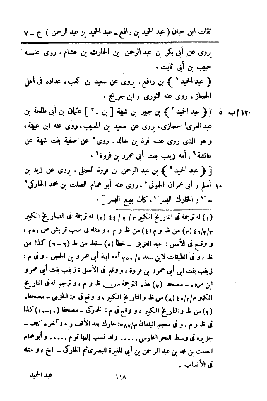 9260 - عبد الحميد بْن جُبَير بْن شيبَة بْن عُثْمَان بْن أبي طَلْحَة بْن عبد الْعُزَّى حجازي يَرْوِي عَن سَعِيد بْن الْمسيب روى عَنهُ بن عُيَيْنَة وَهُوَ الَّذِي روى عَنْهُ قُرَّة بْن خَالِد روى عَنْ صَفِيَّة بنت شيبَة عَنْ عَائِشَة أمه زَيْنَب بنت أبي عَمْرو بْن فَرْوَة