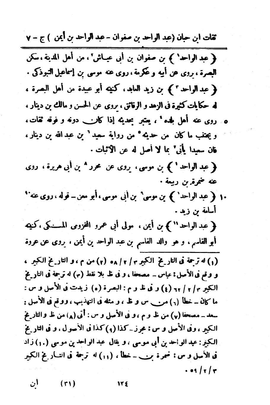 9289 - عبد الْوَاحِد بْن زيد العابد كنيته أَبُو عُبَيْدَة من أهل الْبَصْرَة لَهُ حكايات كَثِيرَة فِي الزّهْد وَالرَّقَائِق يروي عَن الْحسن وَمَالك بن دِينَار روى عَنْهُ أهل بَلَده يعْتَبر بحَديثه إِذا كَانَ دونه وفوقه ثِقَات ويجتنب مَا كَانَ من حَدِيثه من رِوَايَة سعيد بْن عبد الله بن دِينَار فَإِن سعيدا يأتى بِمَا لَا أصل لَهُ عَنِ الْإِثْبَات