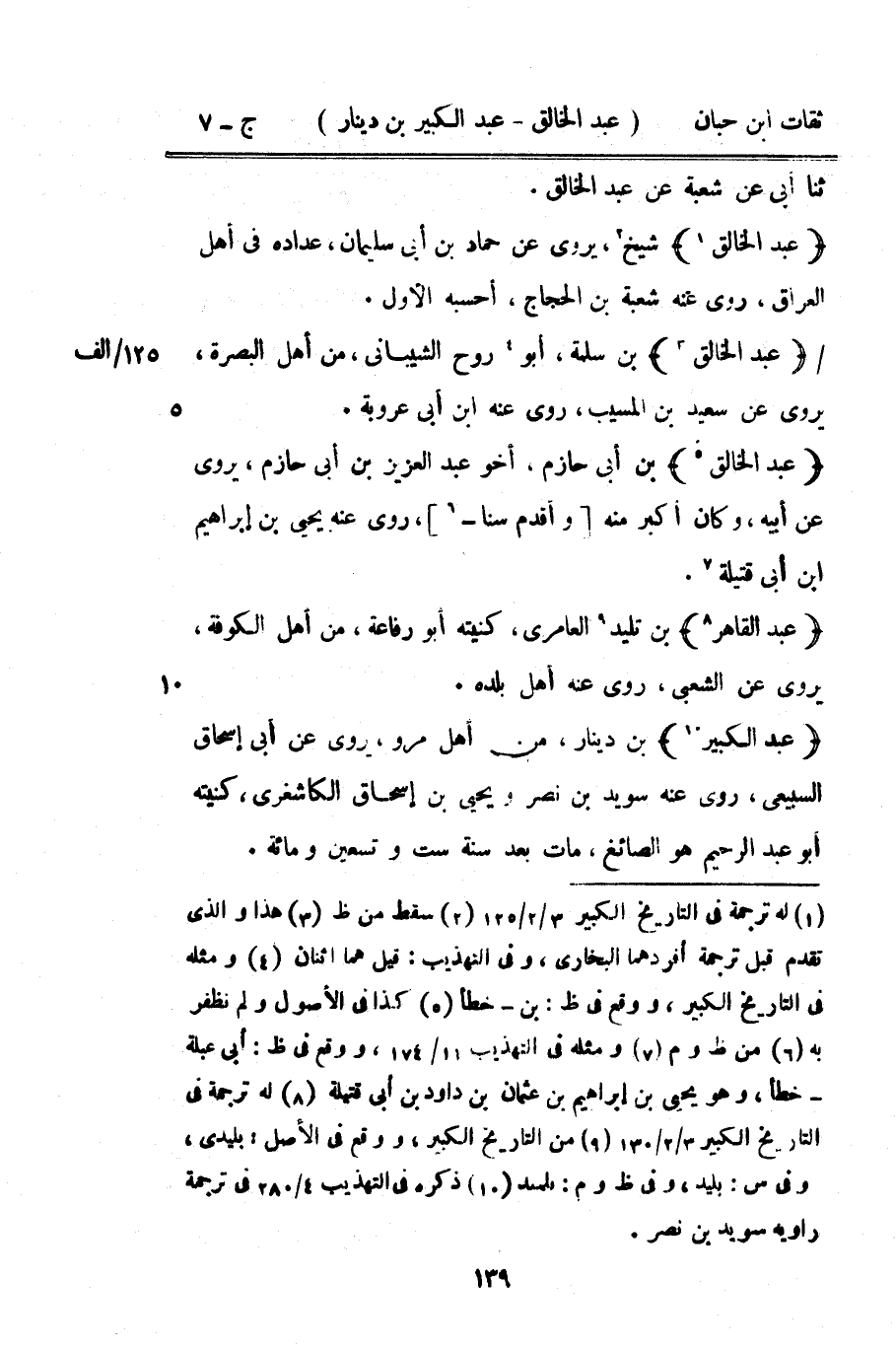 9366 - عبد الْكَبِير بْن دِينَار من أهل مرو يروي عَن أبي إِسْحَاق السبيعِي روى عَنْهُ سُوَيْد بْن نصر ويَحْيَى بْن إِسْحَاق الكاشغري كنيته أَبُو عبد الرَّحِيم هُوَ الصَّائِغ مَاتَ بعد سنة سِتّ وَتِسْعين وَمِائَة