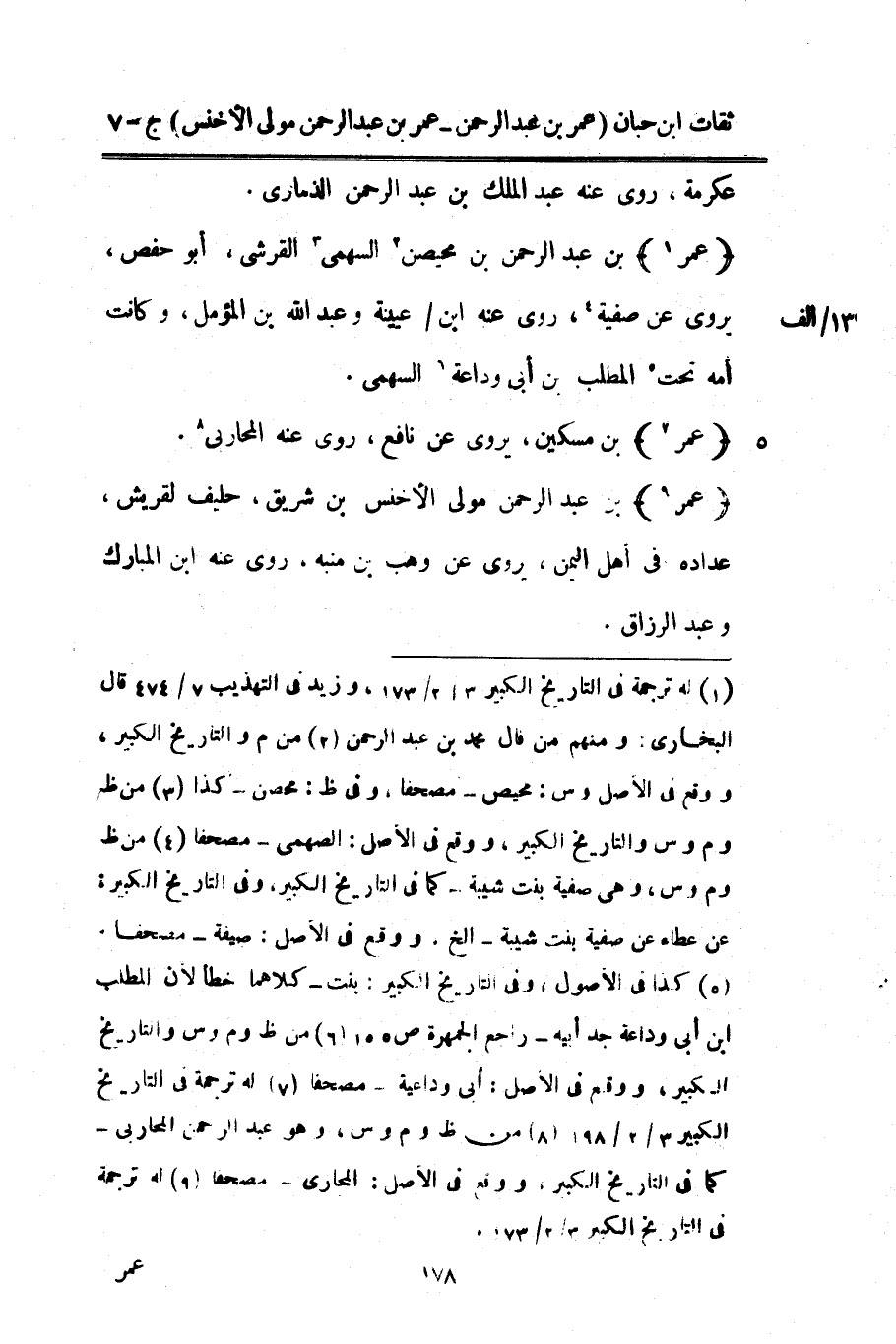 9547 - عمر بن عبد الرَّحْمَن بن مُحَيْصِن السَّهْمِي الْقرشِي أَبُو حَفْص يروي عَن صَفِيَّة روى عَنهُ بن عُيَيْنَة وَعبد اللَّه بْن المؤمل وَكَانَت أمه تَحت الْمطلب بْن أبي ودَاعَة السَّهْمِي
