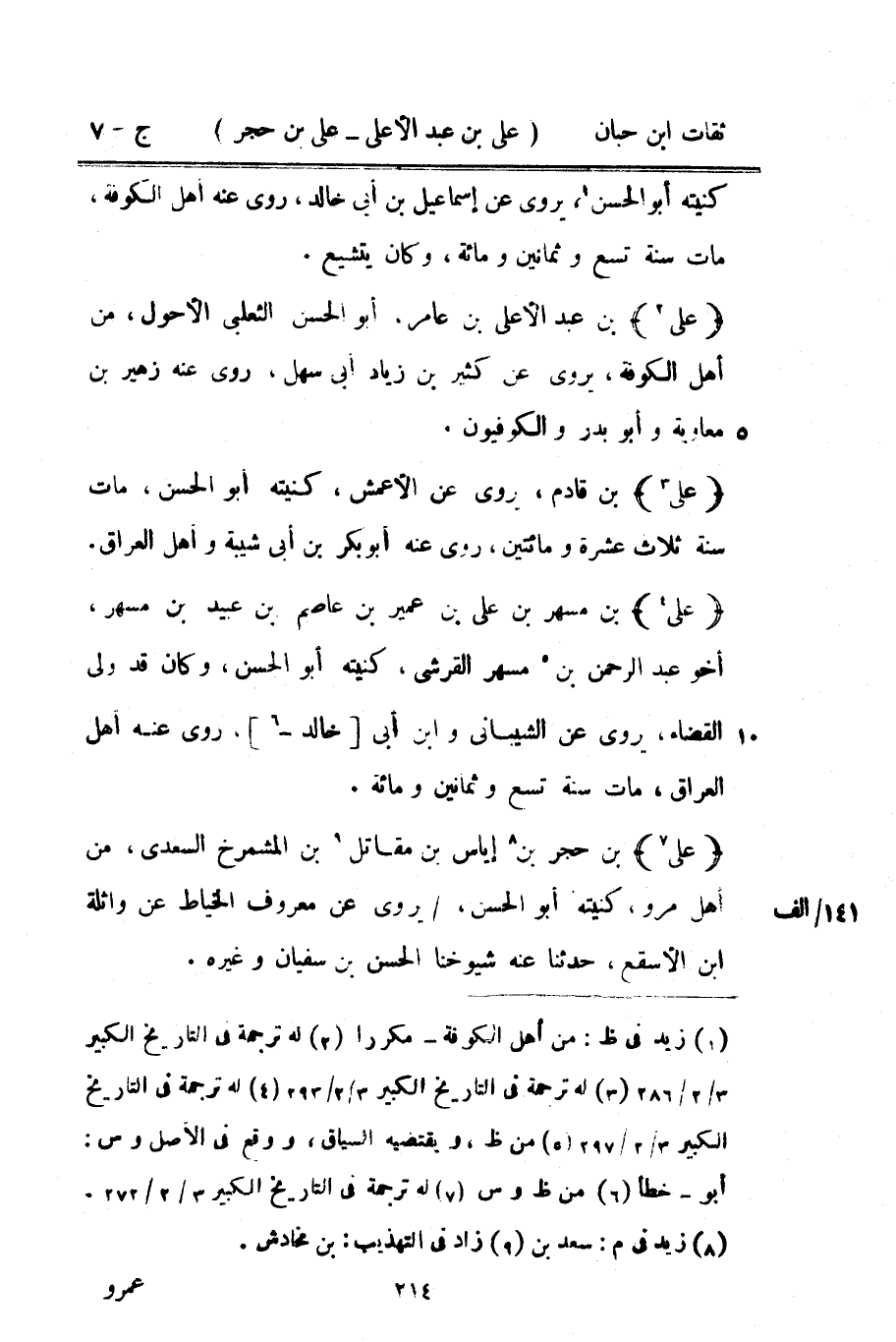 كتاب الثقات لابن حبان (اسم الجزء: 7)
