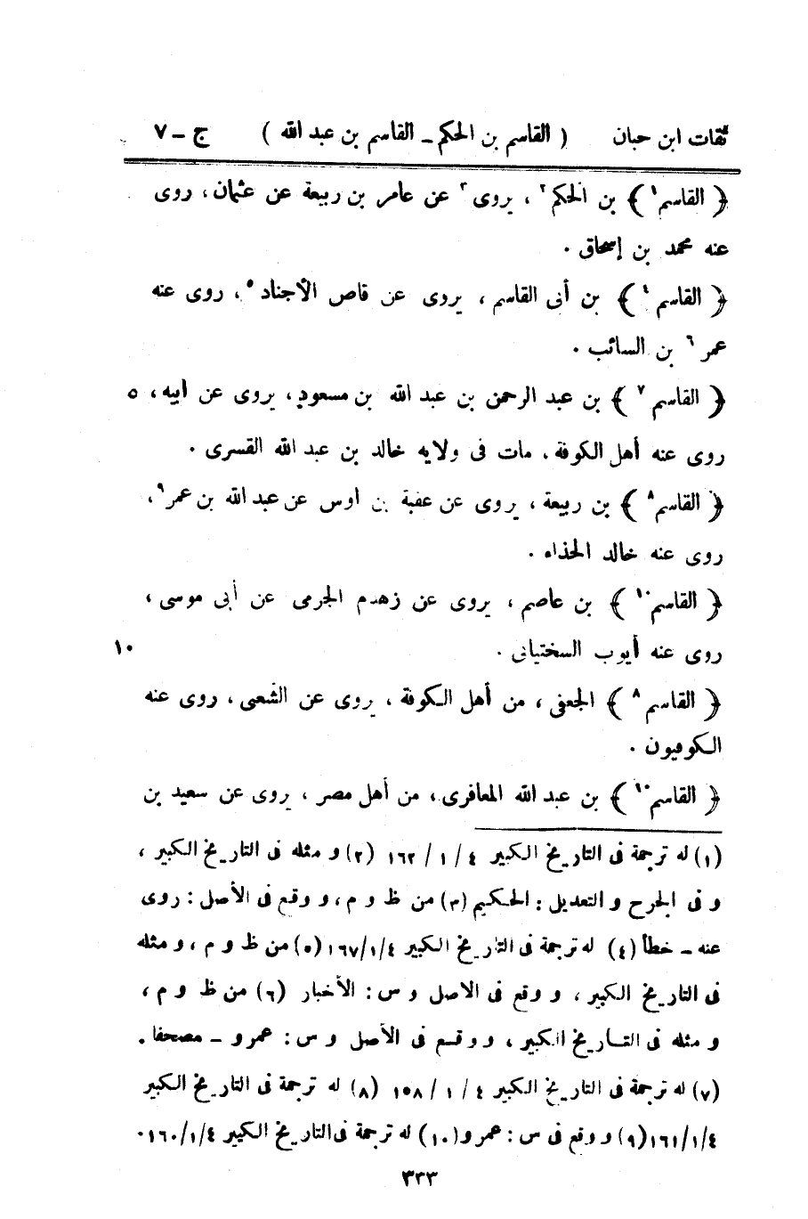 10320 - الْقَاسِم بْن ربيعَة يروي عَنْ عقبَة بْن أَوْس عَن عَبْد الله بْن عمر روى عَنْهُ خَالِد الْحذاء