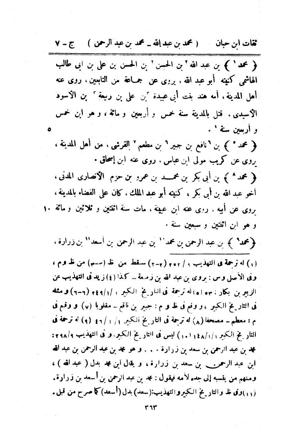 10454 - مُحَمَّد بْن عَبْد اللَّه بْن الْحسن بْن الْحسن بْن عَليّ بن أبي طَالب الْهَاشِمِي كنيته أَبُو عَبْد الله يروي عَن جمَاعَة من التَّابِعين روى عَنهُ أهل الْمَدِينَة أمه هِنْد بنت أبي عُبَيْدَة بْن عَليّ بْن ربيعَة بْن الْأسود الأسيدي قتل بِالْمَدِينَةِ سنة خمس وَأَرْبَعين وَمِائَة وَهُوَ بن خمس وَأَرْبَعين سنة