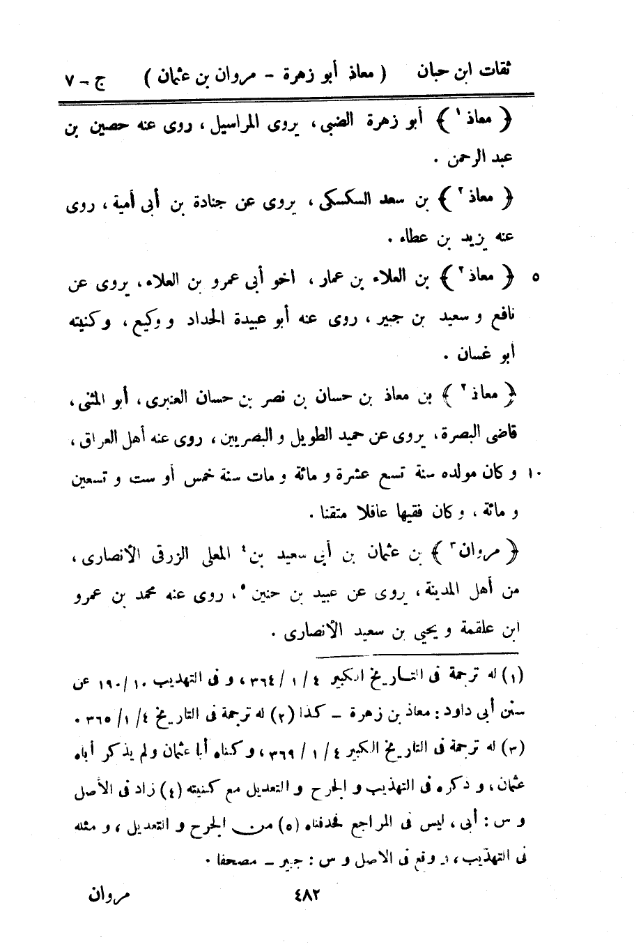11060 - مَرْوَان بن عُثْمَان بن أبي سعيد بن الْمُعَلَّى الزرقي الْأنْصَارِيّ من أهل الْمَدِينَة يرْوى عَنْ عبيد بْن حنين روى عَنهُ مُحَمَّد بن عَمْرو بن عَلْقَمَة ويَحْيَى بْن سعيد الْأنْصَارِيّ