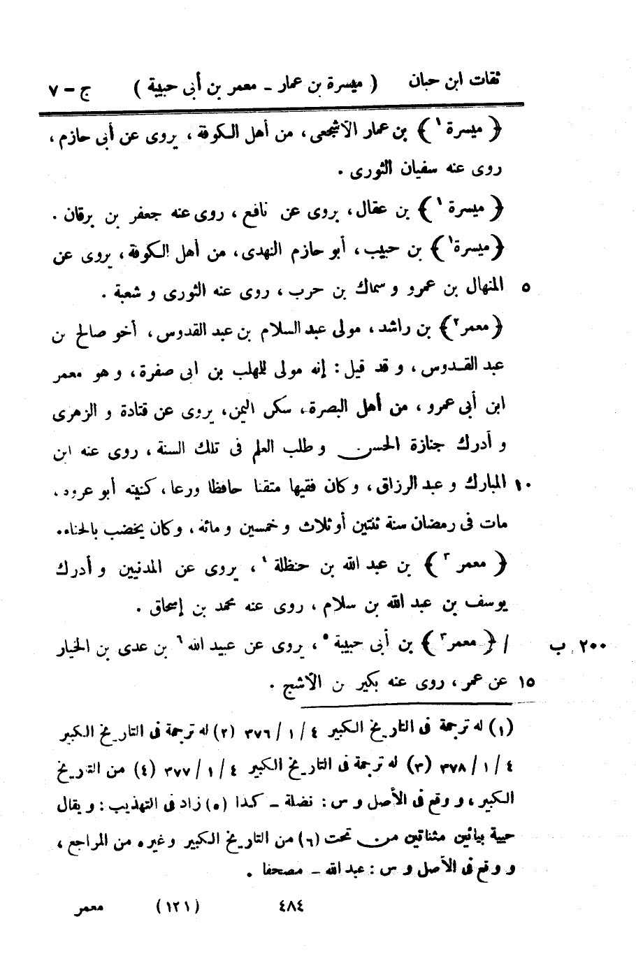 11071 - معمر بن رَاشد مولى عبد السَّلَام بن عبد القدوس أَخُو صَالح بن عبد القدوس وَقد قيل إِنَّه مولى للمهلب بن أبي صفرَة وَهُوَ معمر بن أبي عَمْرو من أهل الْبَصْرَة سكن الْيمن يروي عَنْ قَتَادَة وَالزهْرِيّ وَأدْركَ جَنَازَة الْحسن وَطلب الْعلم فِي تِلْكَ السّنة روى عَنهُ بن الْمُبَارك وَعبد الرَّزَّاق وَكَانَ فَقِيها متقنا حَافِظًا ورعا كنيته أَبُو عُرْوَة مَاتَ فِي رَمَضَان سنة ثِنْتَيْنِ أَو ثَلَاث وَخمسين وَمِائَة وَكَانَ يخضب بِالْحِنَّاءِ
