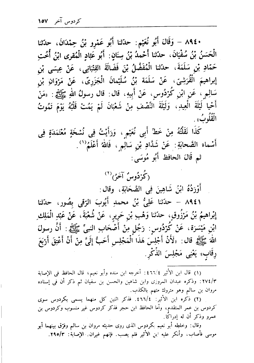 (¬2) ذكره ابن الأثير، 4/466. فذكر اثنين كل منهما يسمى بكردوس سوى كردوس بن عمر المتقدم، وأما الحافظ ابن حجر فذكر كردوس غير منسوب وكردوس بن عمرو وذكر أن له إدراكاً.