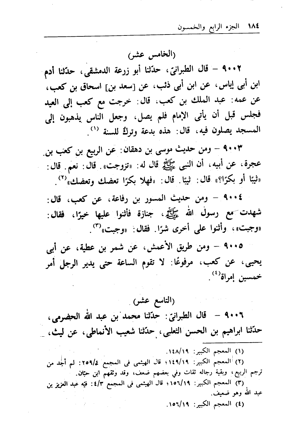(¬3) المعجم الكبير، 19/156؛ قال الهيثمي في المجمع، 3/4: فيه عبد العزيز بن عبد الله وهو ضعيف.