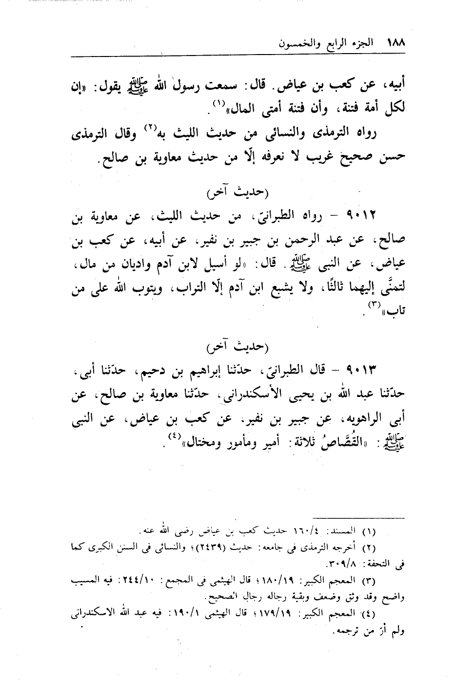 (¬1) المعجم الكبير، 19/180؛ قال الهيثمي في المجمع، 10/244: فيه المسيب واضح وقد وثق وضعف وبقية رجاله رجال الصحيح.