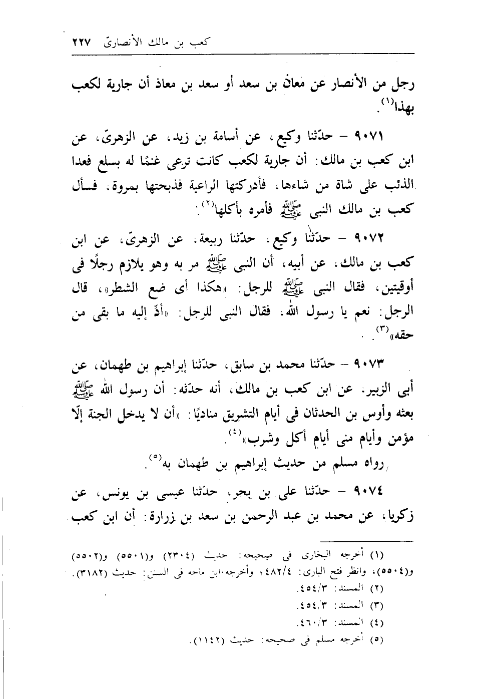 9074 - حدثنا علي بن بحر، حدثنا عيسى بن يونس، عن زكريا، عن محمد ابن عبد الرحمن بن سعد بن زرارة: أن ابن كعب