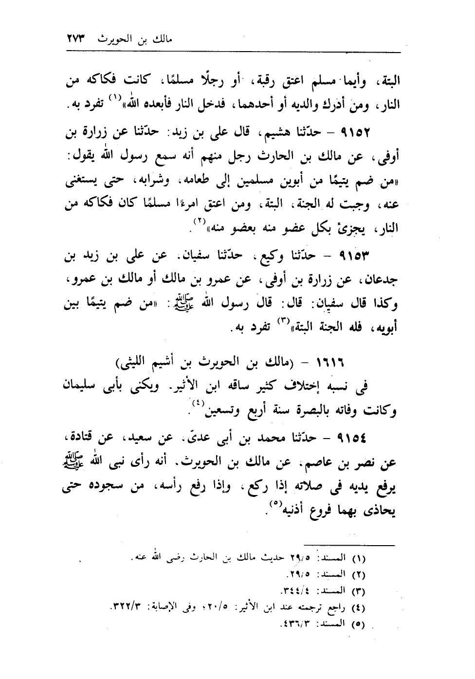 (¬1) المسند، 5/29 حديث مالك بن الحارث رضي الله عنه.