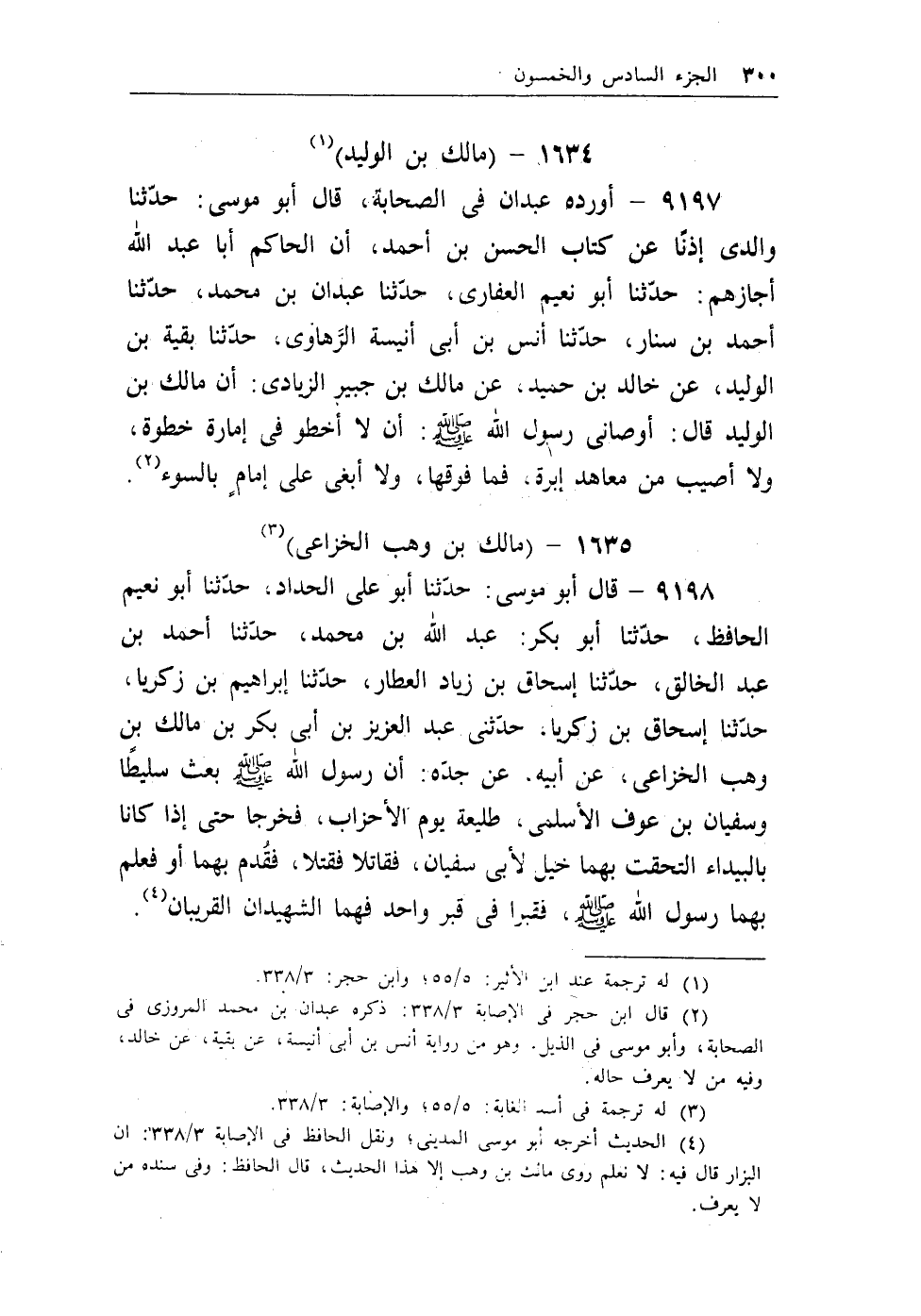 (¬4) الحديث أخرجه أبو موسى المديني، ونقل الحافظ في الإصابة، 3/338: أن البزار قال فيه: لانعلم روى مالك بن وهب إلا هذا الحديث، قال الحافظ: وفي سنده من لايعرف.