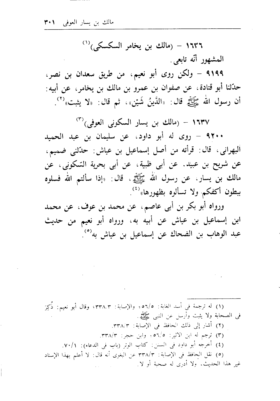 (¬1) له ترجمة في أسد الغابة، 5/56؛ والإصابة، 3/338؛ وقال أبو نعيم: ذكر في الصحابة ولايثبت وأرسل عن النبي - صلى الله عليه وسلم -.