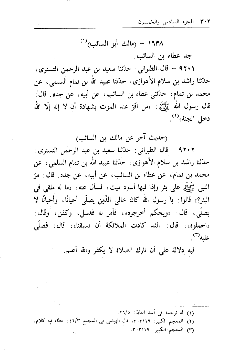 (¬2) المعجم الكبير، 19/303؛ قال الهيثمي في المجمع، 3/42: عطاء فيه كلام.