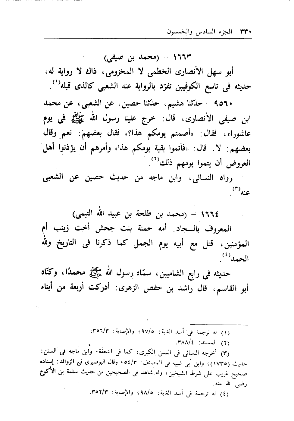 المعروف بالسجاد. أمه حمنة بنت جحش أخت زينب أم المؤمنين، قتل مع أبيه يوم الجمل كما ذكرنا في التاريخ ولله الحمد (¬4) .