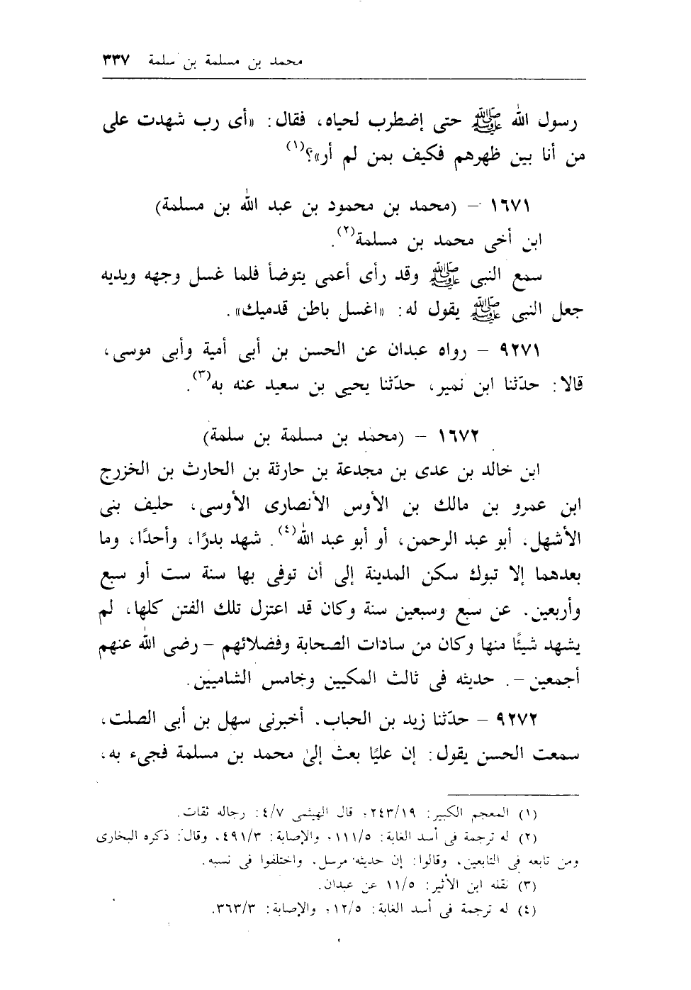 (¬1) المعجم الكبير، 19/243، قال الهيثمي، 7/4: رجاله ثقات.