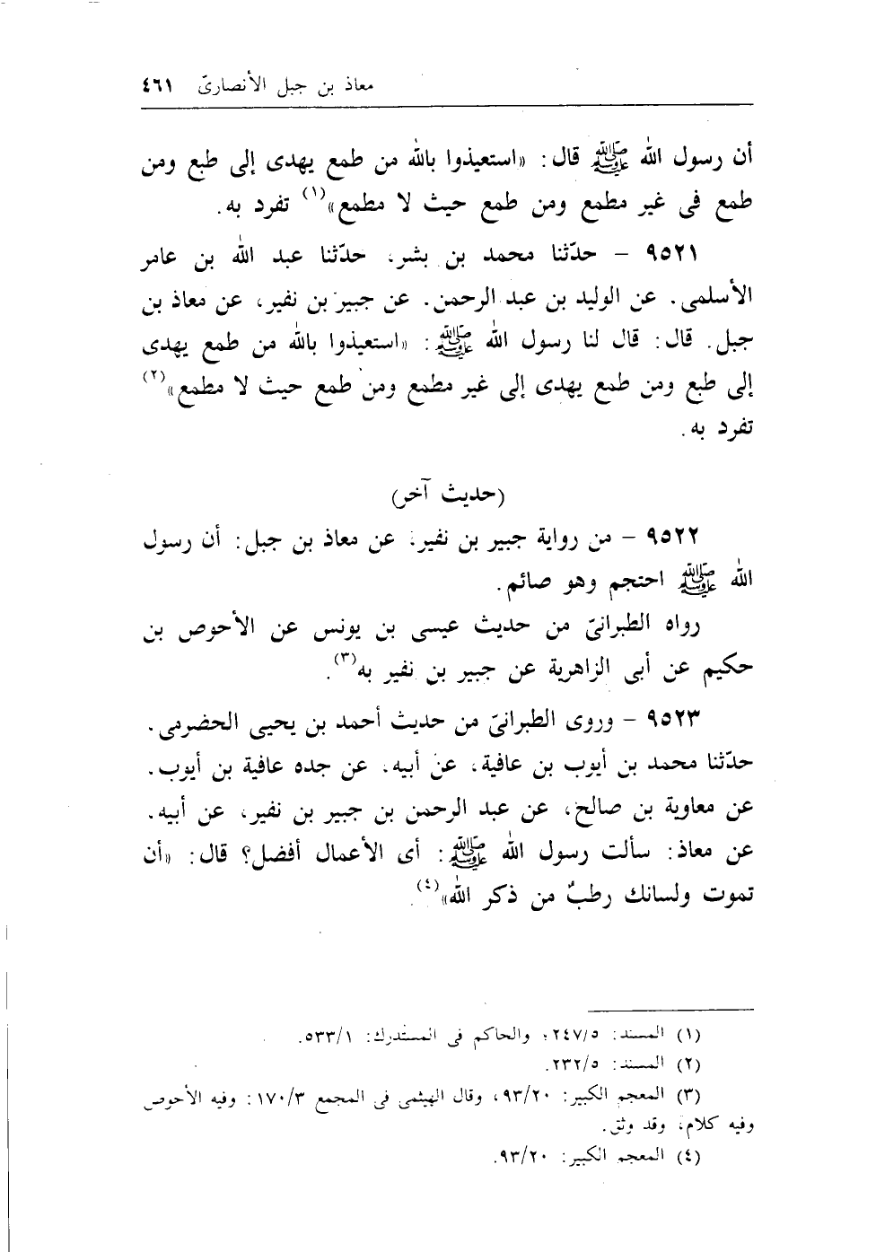 (¬2) المعجم الكبير، 20/93، وقال الهيثمي في المجمع، 3/170: وفيه الأحوص وفيه كلام، وقد وثق.