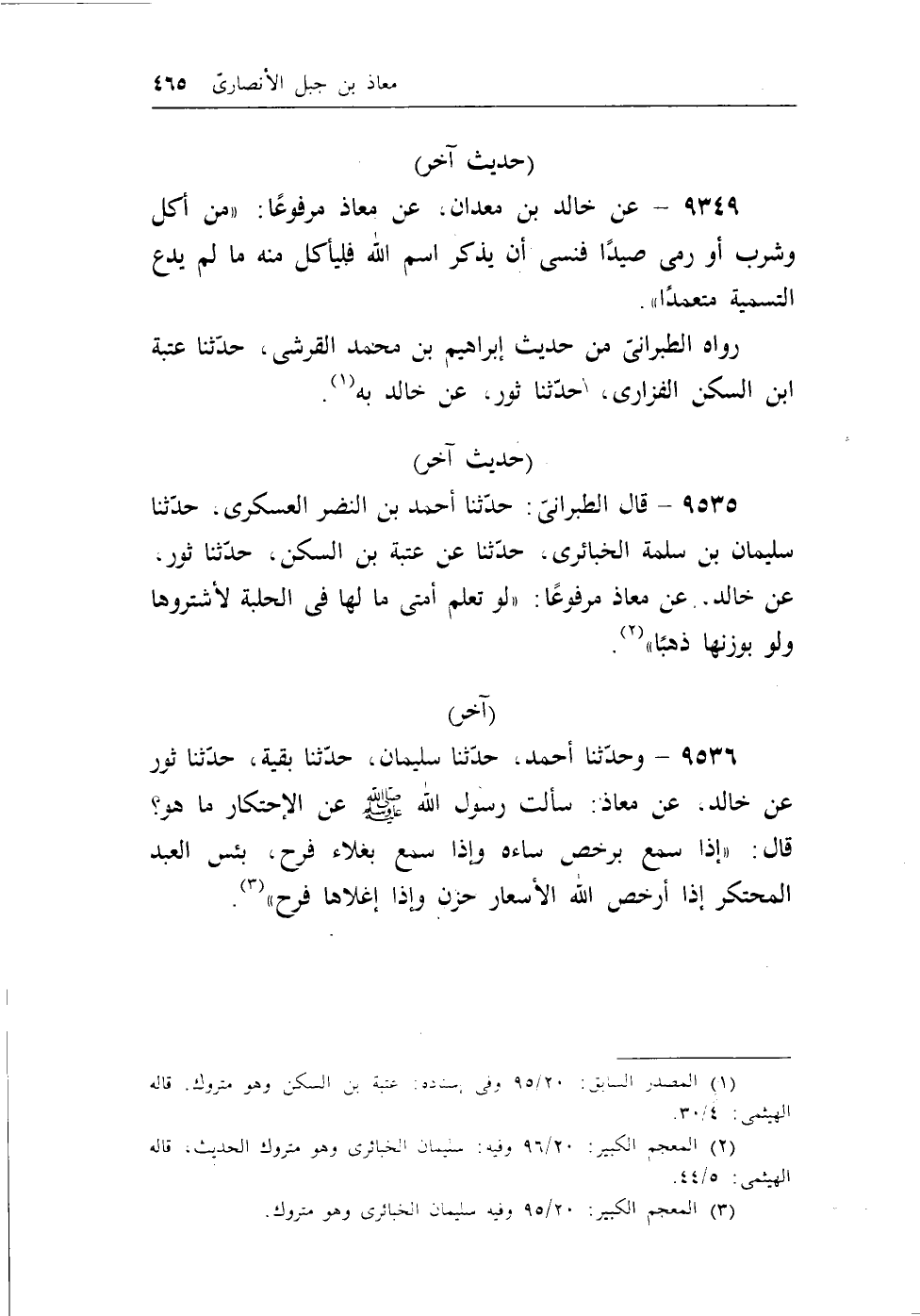 (¬3) المعجم الكبير، 20/95 وفيه سليمان الخبائري وهو متروك.