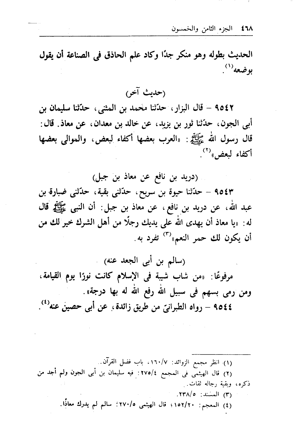 (¬3) المعجم، 20/152؛ قال الهيثمي، 5/270: سالم لم يدرك معاذاً.