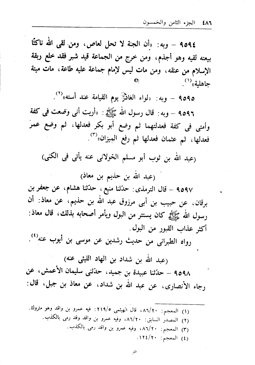 (¬1) المعجم، 20/86؛ قال الهيثمي، 5/219: فيه عمرو بن واقد وهو متروك.