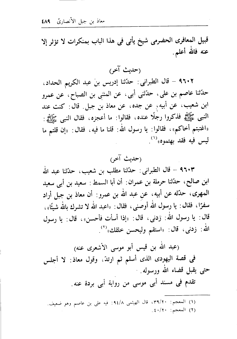 (¬1) المعجم، 20/39، قال الهيثمي، 8/94: فيه علي بن عاصم وهو ضعيف.