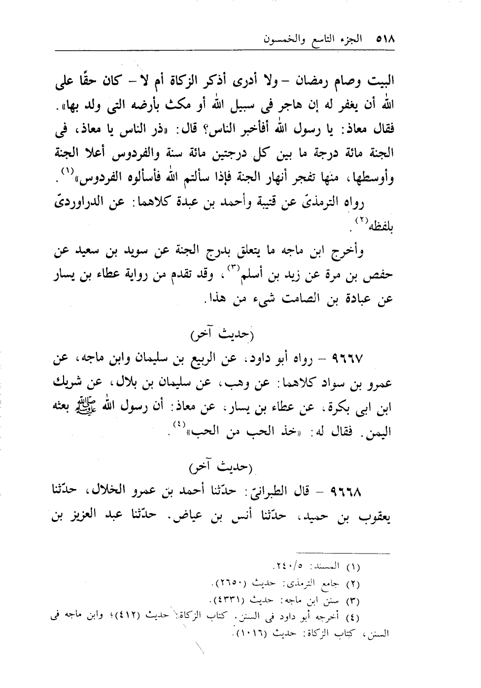 وأخرج ابن ماجة مايتعلق بدرج الجنة عن سويد بن سعيد عن حفص بن مرة عن زيد بن أسلم (¬3) . وقد تقدم من رواية عطاء بن يسار عن عبادة بن الصامت شيء من هذا.