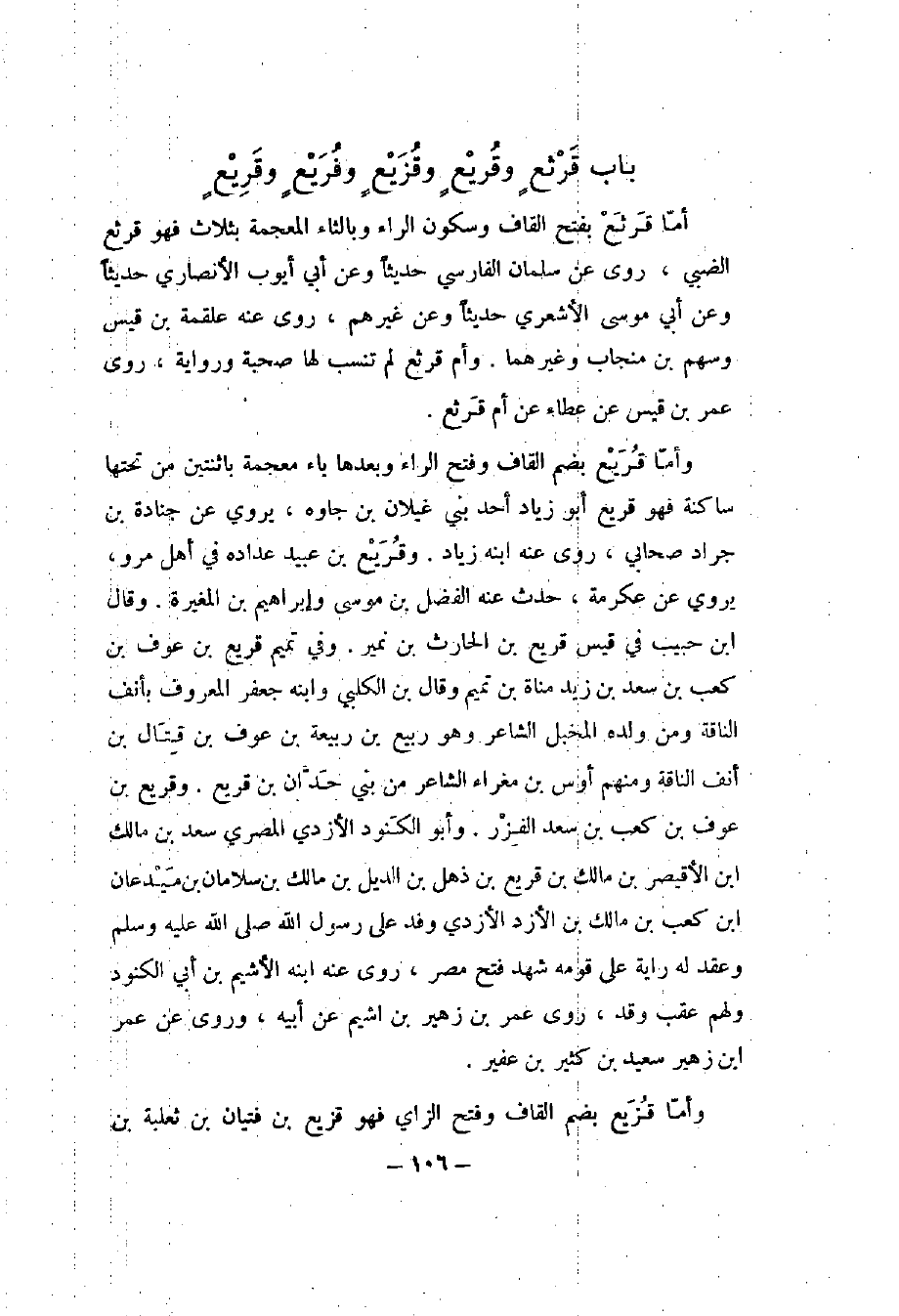 وأما القياني بكسر القاف وبعدها ياء مخففة معجمة باثنتين من تحتها فهو عبدوس بن المعلى بن عبدوس القياني والقيانة بطن من غافق يكنى أبا عبد الملك وعمر وعلت سنه وكان أديبًا رازي حكي عنه وجدته في تاريخ ابن يونس بفتح القاف بخط الصوري وابن الثلاج. أما القبابي بباء مكررة معجمة بواحدة فهو علي بن محمد بن العلاء أبو الحسن القبابي النيسابوري وقباب أقصى محلة من نيسابور على طريق العراق سمع محمد بن يحيى وإسحاق بن منصور وعبد الله بن هاشم وعمار بن رجاء وعلي بن سعيد النسوي ويحيى بن معاذ الرازي وغيرهم توفي سنة أربع عشرة وثلاثمائة، روى عنه أبو عبد الله الصفار ومحمد بن صالح وأبو علي الحافظ وحسين بن علي التميمي وأبو طاهر بن خزيمة وغيرهم.