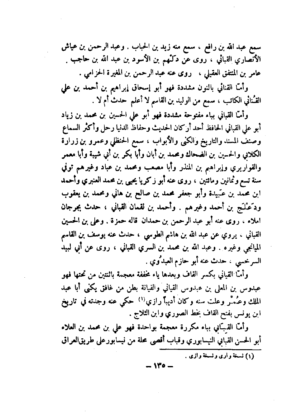 وعبد الله بن نسيب السلمي، حدث عن أبي السليل ومسلم بن عبد الله بن سبرة، روى عنه معتمر بن سليمان ويحيى بن سعيد القطان. قال الحميدي وأما جشيب أوله جيم مفتوحة بعدها شين معجمة مكسورة فهو عامر بن جشيب أبو خالد الشامي عن خالد بن معدان، روى عنه لقمان بن عامر كناه معاوية بن صالح قاله البخاري.