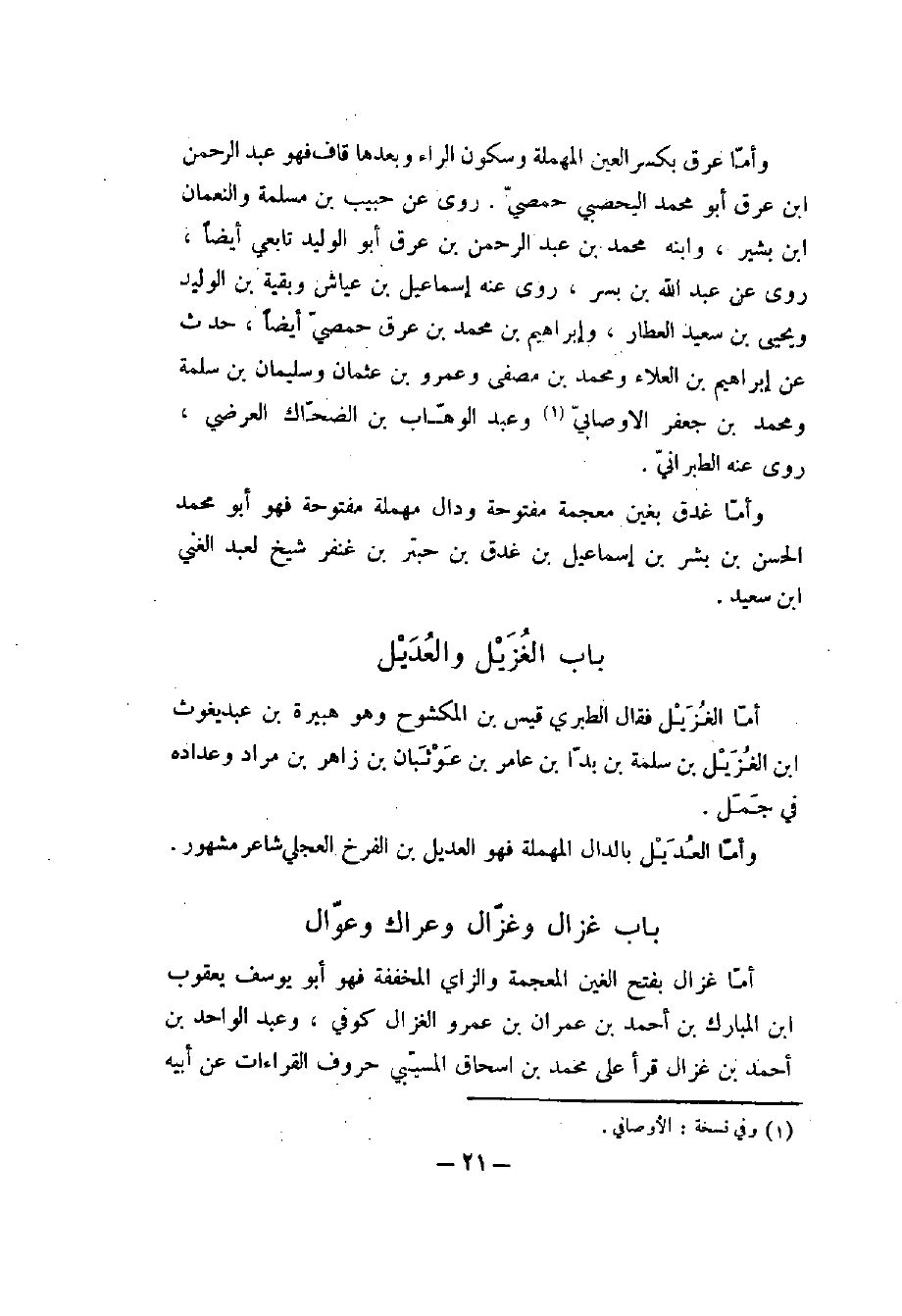 أما غصين بالصاد المهملة فهو الحارث بن غصين أبو وهب الثقفي كوفي روى عن منصور بن المعتمر وإبراهيم الهجري والأعمش وحصين وليث بن أبي سليم وغيرهم، روى عنه سلام بن سليمان المدايني، ويحيى بن يعلى الأسلمي، ومحمد ابن جعفر المدائني، ودبيس بن حميد الكوفي وغيرهم.