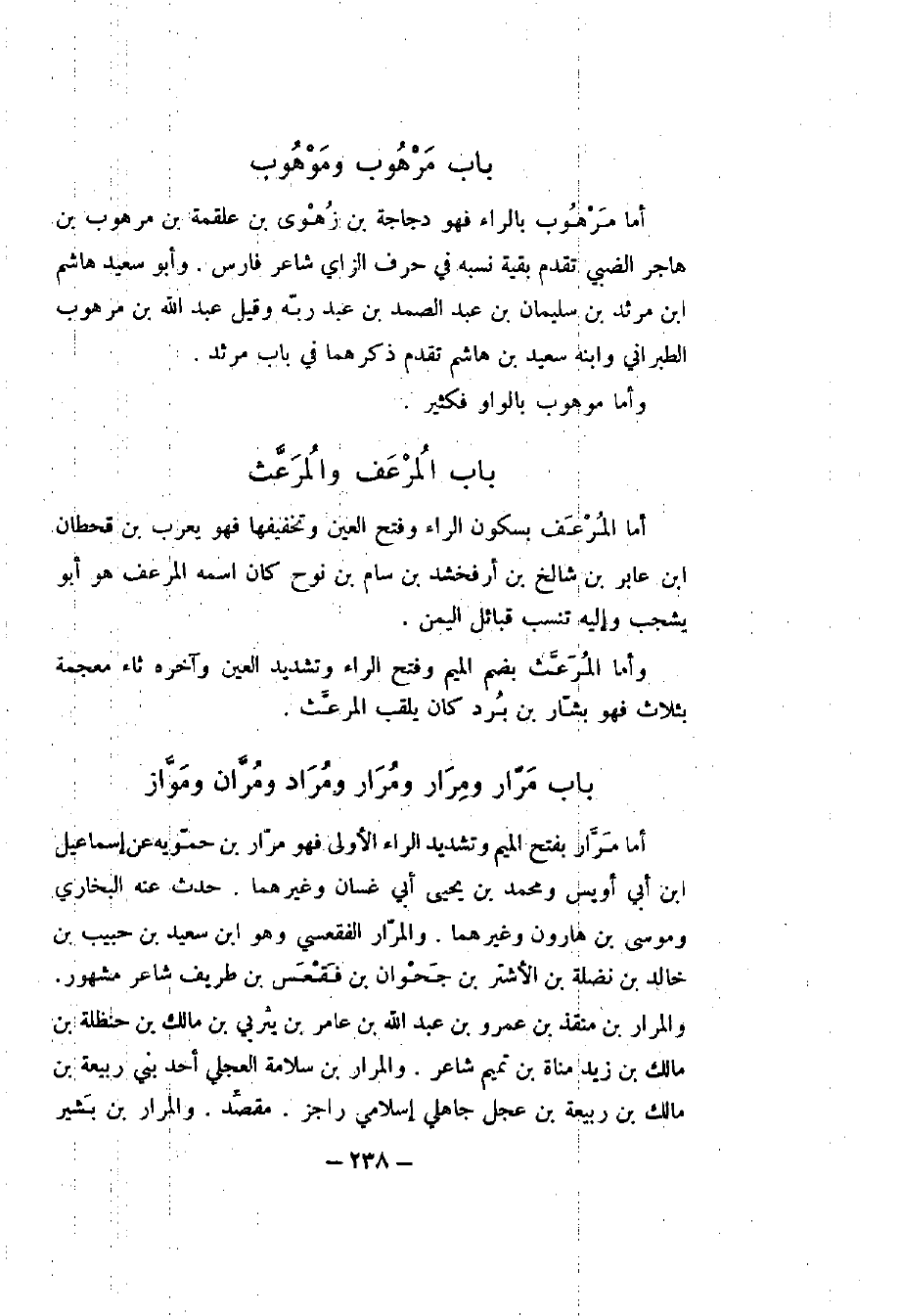 باب المتنبي والمنيني والمنيني وباب المجبري والمخبزي وباب المحولي والمخولي وباب المحاسبي والمخاشني والمجاشي والمحاسي: