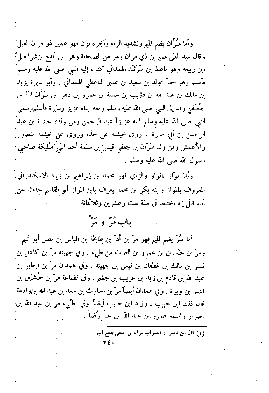 أما المروزي بالزاي فكل من ينسب إلى مرو الشاهجان وهم كثيرون منهم عبد الله بن المبارك وأحمد بن حنبل ويحيى ابن معين، وإسحاق بن راهويه وإسحاق بن أبي إسرائيل وسويد بن نصر، والنضر بن محمد وخلق كثير ولهم تواريخ.
