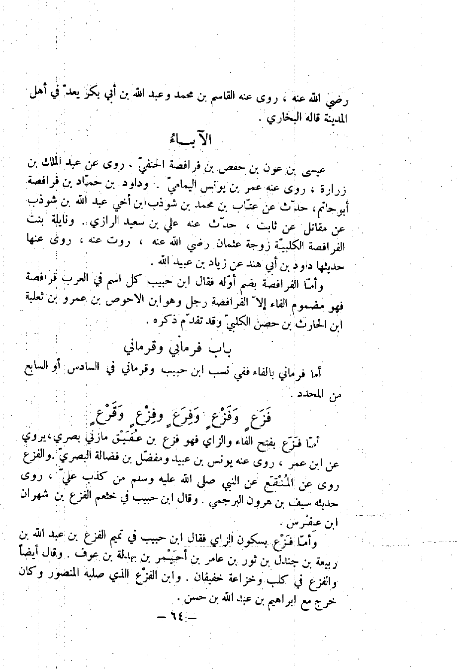 أما الفتياني بالفاء نسبةً إلى فتيان بطن من بجيلة منهم رفاعة بن عاصم الفتياني عن عمرو بن الحمق.