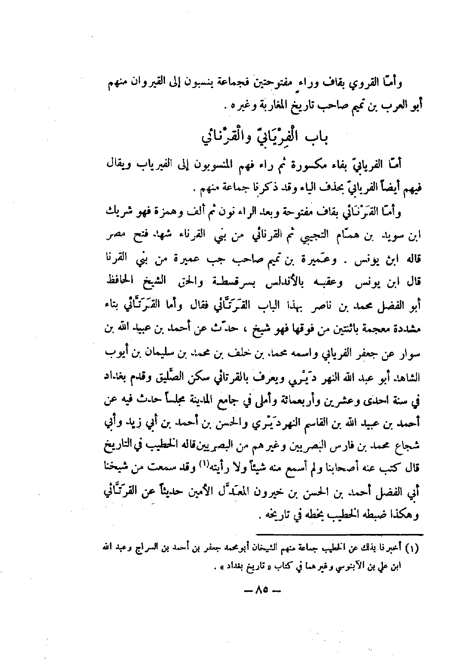 وأما قرار بكسر القاف وبالراء المكررة فقال ابن حبيب في عنزة: قرار بن ثعلبة بن مالك بن حرب بن طريف بن النمر بن يقدم ابن عنزة بن أسد بن ربيعة بن نزار.